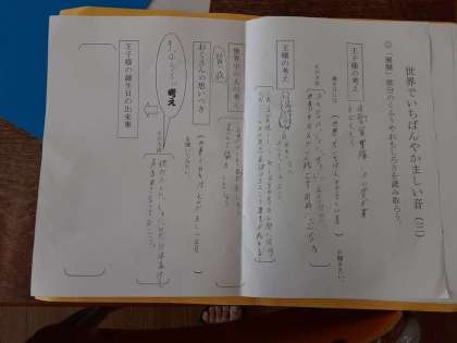5年生は国語科で「世界でいちばんやかましい音」の学習をしています。物語は進み、世界でいちばんやかましい音を聴きたいという王様に「協力したい」とみんな考えながら、「その音を自分も聴きたい」と思う人が出てきました。それを「ずるい」「自分勝手な」考えと表したらいいのでしょうか。それとも「すばらしい」考えと表していいのでしょうか。