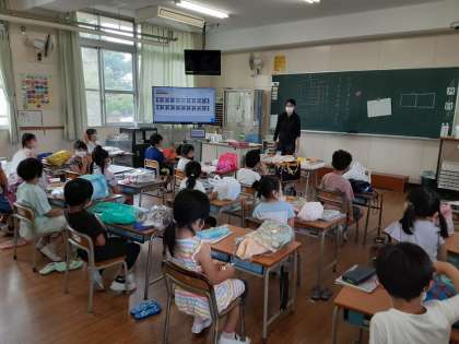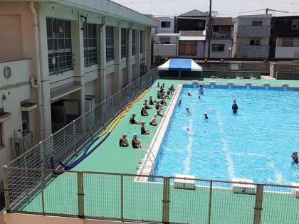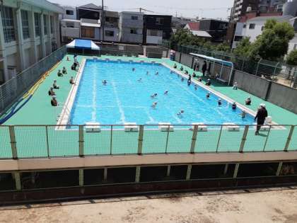 プール開き(1年) 公開日 2021/06/21 更新日 2021/06/21 お知らせ 2年生に続いて1年生もプール開きを行いました。教室で、プールサイドでの並び方や水中で危険な行為をしないことなど、注意事項を説明しました。 小学校に入学して初めてのプールです。面積は広いですが、水を抜いて少なくしていたので、何とか抵抗なく入られたでしょうか。水中を歩いたり、跳びはねたりして活動していました。 いいね(0)