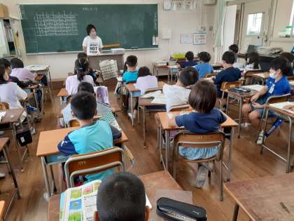 3年生では理科で「風とごむの力のはたらき」について学習しています。前時に体育館で送風機を使って車を走らせました。走った距離について出し合っていました。風にはものを動かす力があること、風の力が変わるとものを動かす力も変わることがわかりました。