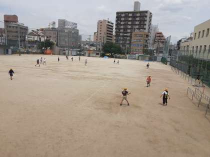 4年1組は学級活動の時間に、運動場でしっぽ取りに取り組んでいました。終わりの会で、お友だちの良いところをたくさん見つけて発表します。お友だちのいいところを250個見つけたので、楽しい活動をすることになりました。前半はしっぽ取り、後半はボールを使って楽しく活動をしていました。