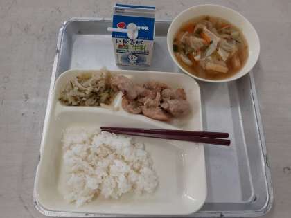 7月5日(月)の給食 公開日 2021/07/05 更新日 2021/07/05 お知らせ 7月5日(月)の給食は、ごはん・牛乳・鶏肉のしょうゆマヨネーズ焼き・五目汁・切干しだいこんのゆずの香あえです。しょうゆは、肉類との相性がとてもよく、マヨネーズとの相乗効果で、鶏肉をより美味しくしてくれます。焼きもの機で230度15分間じっくり焼いているので、柔らかく焼き上がっています。 いいね(0)