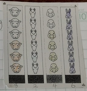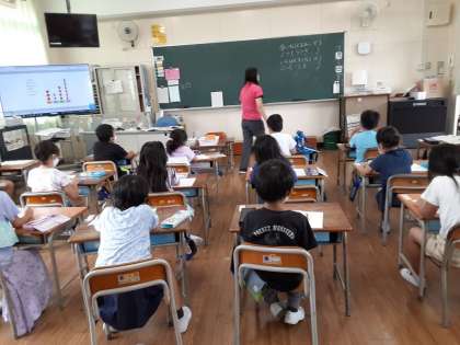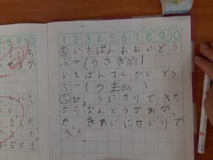 かずを せいりしよう 公開日 2021/07/05 更新日 2021/07/05 お知らせ 1年生では算数科で「かずを せいりしよう」を学習しています。1組では、前時に作成した表(馬やウサギなどの動物の数を整理したもの)を見て、どんなところがわかりやすくなったのか話し合っていました。一目見て、最も多い動物と少ない動物がわかることは、表のメリットのようです。 この後、学習の「ふりかえり」をしました。「表にして、わかりやすくなった。」などの考えが書かれていました。 いいね(0)