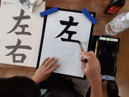 「左右」 公開日 2021/07/07 更新日 2021/07/07 お知らせ 4年1組では書写の時間に、毛筆で「左右」に取り組んでいました。「書き順1画目はどちらから?」「全体の形が三角形のようになるのは左か右か?台形を反対にしたようになるのは?」低学年に習った漢字ですが、毛筆で書くのは簡単ではないようです。それでも、1枚書き上げるごとに、字は整ってきているように感じました。 いいね(0)