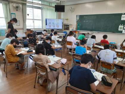 4年生では社会科で「命をささえる水」について学習しています。多くの人が働いて、いろいろな工夫がされていることで、大阪市の水が水道まで届いていることを学習しました。1組では、水を大切にするために自分はどんなことができるのか話し合っていました。「お風呂のお湯を洗濯に使う」「手洗いで、石けんを泡立てるときには1度水を止める」など発表され、友だちの意見を聞いて、さらに思いついた児童もいるようです。