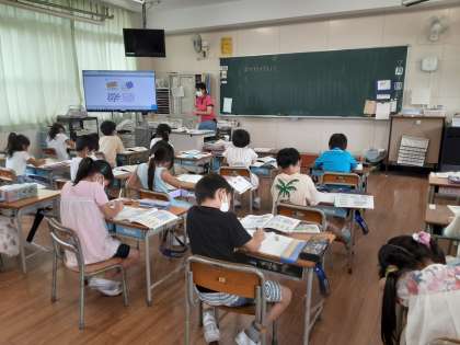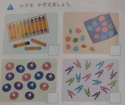 1年生では算数科で「10よりおおきいかず」を学習しています。パス・アサガオ・洗濯ばさみなどがたくさんあります。1組では、それらを間違えないように数える方法について考えていました。印を入れようか、ブロックを使おうか、見通しを立てていました。1年生は、10より大きい数でも間違えずに正確に数えられるようになってきました。