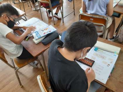 そろばん 公開日 2021/07/15 更新日 2021/07/15 お知らせ 4年生は算数科で「そろばん」を扱います。2組では、基本的な玉の動かし方を学んでいました。そろばんをマスターするところまではいきませんが、そろばんに慣れて、十進法のしくみが活かされていることを体感してもらえたらと思います。 いいね(0)