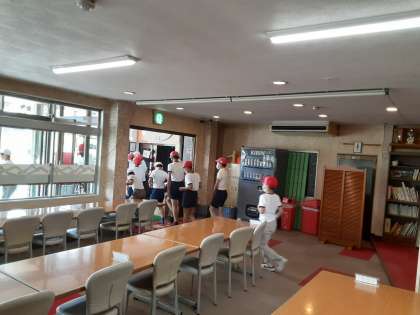 避難訓練です。班で黙って素早く行動するように気をつけていました。