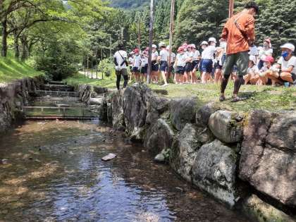 ヤマネとアマゴ、2種類のなかなを放っています。説明を聴いています。