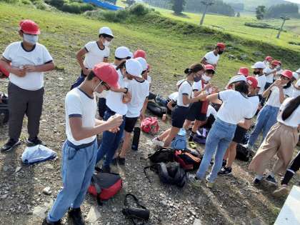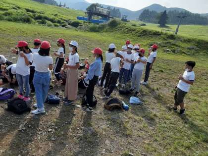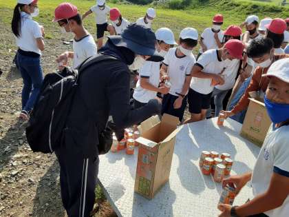 凧揚げで、くたくたのようです。ここでオレンジジュースを飲みます。元気を取り戻していました。