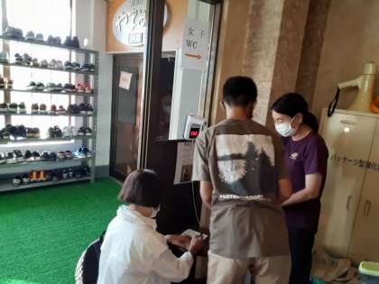 夕食前に検温と健康観察をします。体調が悪い人はいませんでした。