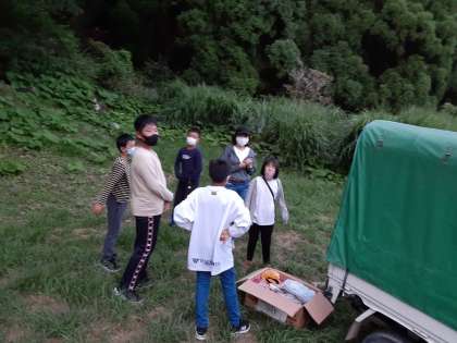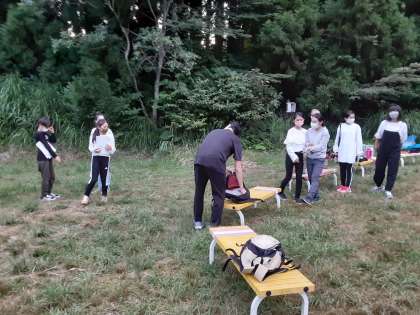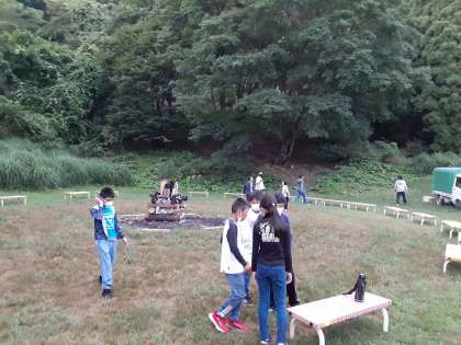 いよいよキャンプファイヤーが始まります。司会、火の精、各スタンツ係、直前の練習の様子です。