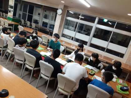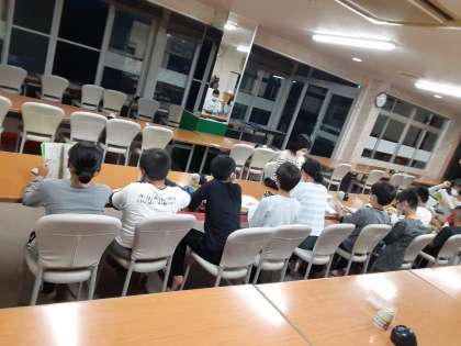 他の団体との関係で、夜の予定が少し変わりました。夕食後すぐに全員日記と反省を書きました。そして、7時半から班長室長の反省会を先にしました。