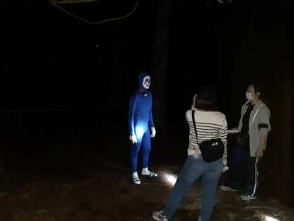 次はナイトウォークです。肝だめしの森を散歩します。