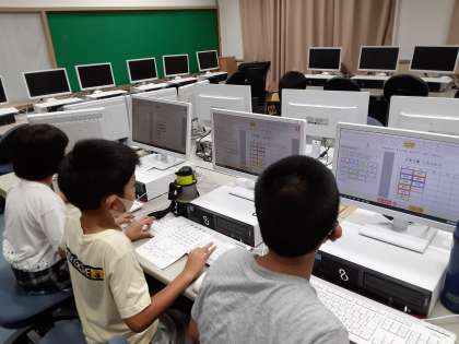 3時限目、パソコン室で2学期の時間割を作っていました。1人1台タブレット端末では印刷ができないので、パソコン室で作業していました。自分好みのレイアウトや文字で、素敵な時間割りを作っていました。