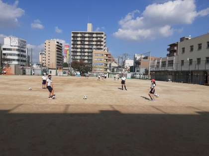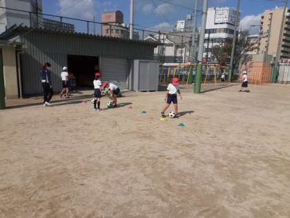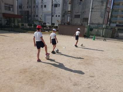 サッカー 公開日 2021/11/17 更新日 2021/11/17 お知らせ 4年生は体育科で、ゴール型のボールゲーム「サッカー」に取り組んでいます。1組では、グループに合わせて練習をしていました。マーカーコーンを利用してジグザグに進むドリブルの練習、ネットをゴールに見立てて前に立てているコーンをねらうシュートの練習など、工夫してパス・ドリブル・シュートの練習していました。グループ内では教え合ったり励まし合ったり、協力して練習を進めていました。 いいね(0)