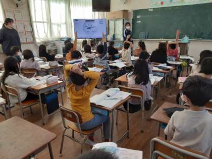 重さ 公開日 2021/11/17 更新日 2021/11/17 お知らせ 3年生は算数科で「重さ」について学習しています。本時では、はかりを使って物の重さを量っていました。今回は算数と社会の教科書の重さを量ります。量る前に、はかりの特徴について考えていました。1めもりは何gでしょうか。50gまでに10めもりあるので「50÷10=5、5グラム」のようです。また「50g・100g・150g……」ときりがいい箇所のめもりを利用すると数えやすいようです。 この後、グループで重さを量っていました。 いいね(0)