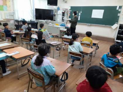 1年生では、ひらがなだけでなく、かたかな全て習いました。2組にでは、採点したカタカナテストが返却されているところでした。ワ行「ワイウエヲ」や「ツ」と「シ」、「ミ」が鏡の字にならないように、カタカナ51文字全て覚えきるのは大変ですが、がんばってほしいです。