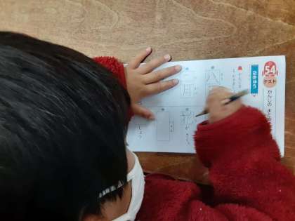テストが返された後、すぐに漢字ドリルを出して、新出漢字の練習をしていました。がんばれ、1年生。