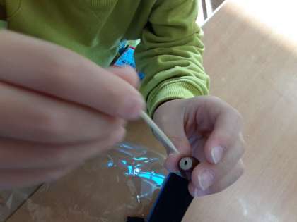まずドングリの実に爪楊枝を刺すこと自体が難しいです。そして、バランスを考えて刺さないとうまく回りません。