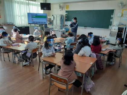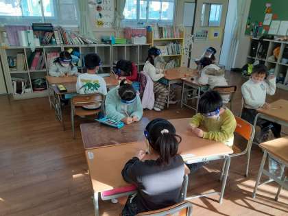 1年生は生活科で「たのしい あき いっぱい」を学習しています。1組では、どんぐりのこまを作っていました。ドングリの実に爪楊枝を刺すだけ、児童の目には簡単に見えたでしょうか。すぐに始めようとするところを先生から「ちょっと待った。」がかかりました。