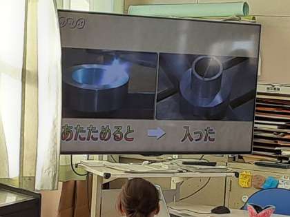 温度による体積の変化 公開日 2021/11/26 更新日 2021/11/26 お知らせ 4年生は理科で「ものの温度と体積」の学習をします。1組では、「温度によって金属の体積が変化する」ことを前時に実験で検証しました。本時では、より大掛かりな実験の様子を映像で観ていました。大きな金属をバーナーで熱すると急激に膨張するのですが、水で急に冷やすと縮小する様子を、いろいろな角度から実験して観ることができました。 これだけダイナミックな実験を観ていると、簡単には忘れないように思います。 いいね(0)
