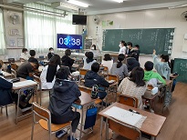 5年生では学級活動の話し合いをしていました。話し合いは、司会が前に出て進めています。