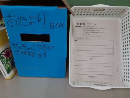 教室の後ろには「相談カード」と「おたよりBOX」が置かれています。何でも相談できる・話し合える学級に育ってほしいと思います。
