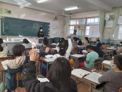5年生は国語科で「大造じいさんとがん」を学習しています。本時では、大造じいさんが昔捕まえたがんをおとりにする第3の計略の場面で、大造じいさんの気もちについて考えていきました。計略がうまくいきそうなときに、はやぶさが飛んできました。危なくなったおとりのがんを残雪が身を挺して助けました。大造じいさんは残雪を撃つチャンスがありましたが撃ちませんでした。