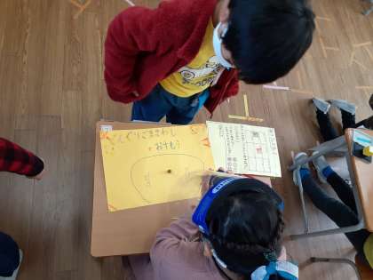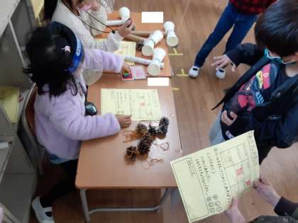 「松ぼっくりヨーヨー」も楽しそうです。お店番の人も親切にやり方の説明をしていました。