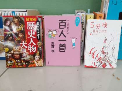 これらの本は教室の後ろに置かれています。これらを読んで、さらなる歴史好き・短歌好き・ショートストーリー好きが育ってくれたらと思います。