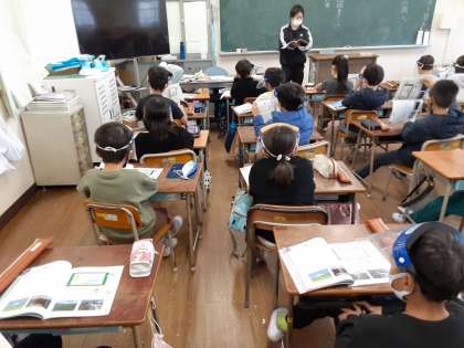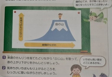 3年生は音楽科で「ふじ山」を学習しています。「かーみなーりー さーまーをー しーたに きーくー」きれいな歌声が聞こえてきました。フレーズが、ちょうど富士山の形を描くように、緩やかに上がり下がりしています。
