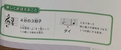 次は「あの雲のように」です。リコーダーで演奏していました。4分の3拍子ですが、付点2分音符と4分音符がタイで結ばれています。この拍をきれいに吹けるように練習していました。