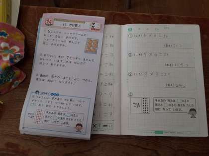 かけ算の練習問題 公開日 2021/12/02 更新日 2021/12/02 お知らせ 2年生では算数科で「かけ算」を学習しています。ついに1の段の九九も作り終え、練習問題をこなしてます。計算ドリル・算数の教科書・プリント、1つの課題が終わったら、すぐに次の課題へと移るので、たくさん練習を積んでいるようです。内容も計算問題から文章問題まで多様です。 かけ算九九は、たくさん練習するほど身に着くので、がんばってほしいと思います。 いいね(0)