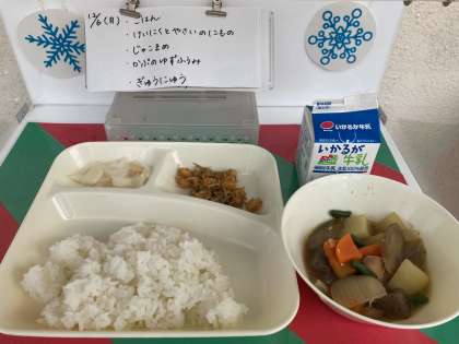 12月6日(月)の給食は、ご飯・牛乳・鶏肉と野菜の煮もの・じゃこ豆・かぶのゆず風味です。かぶはアブラナ科の植物で、はくさい・菜の花・キャベツなどの仲間です。日本では、古くから栽培されてきました。かぶは1年中買うことができますが、寒い時期の方が甘みがあり、美味しいです。優しくきめ細やかな甘み、独特の食感、とても美味しかったです。