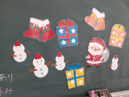 教室の後ろには、素敵なクリスマスの掲示がされていました。