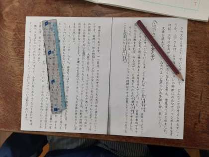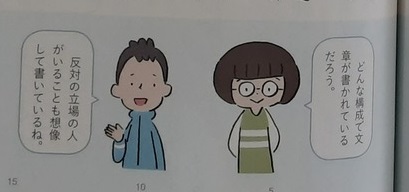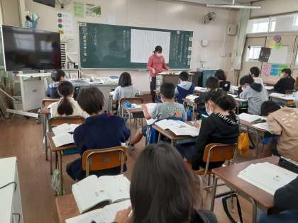 5年生では国語科で「反対の立場を考えて意見文を書こう」の学習をしています。本時では、教科書の例文を読みながら意見文の書き方について考えていました。例文「山下さんの文章」を読んで、相手を説得できる文章の構成について話し合っています。構成は「話題」⇒「提案」⇒「理由」だけでは意見を通すのに弱いようです。次に「反対意見」も載せて「反対意見に対する反論」を続けることが、より説得力があるようです。