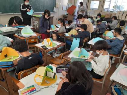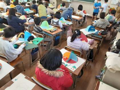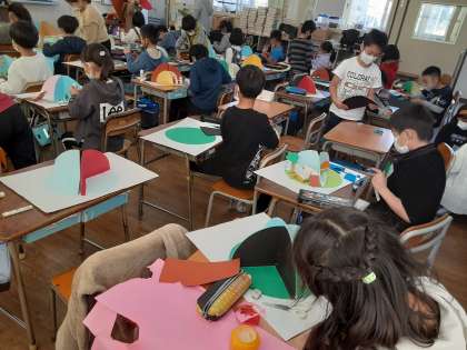 くるくるランド 公開日 2021/12/09 更新日 2021/12/09 お知らせ 3年生は図画工作科で「くるくるランド」作りに取り組んでいました。厚紙で世界を3つか4つに仕切っています。それぞれの世界に自分の想像する場面を作り上げていきます。「朝・昼・夜」「春・夏・秋・冬」もっともっと子どもたちの発想で不思議な世界を考えていました。回転させると、世界がくるくる回って移り変わります。 夢の世界が広がる作品展がとても楽しみです。 いいね(0)