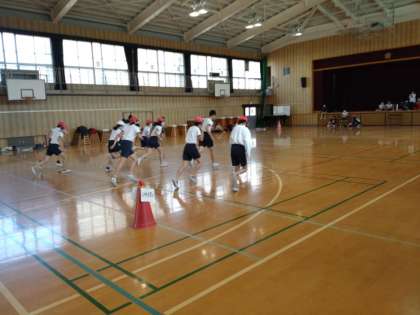 6年生は体育授業前半、なわとびに取り組んでいました。一定時間跳び続けて、体のウォーミングアップにつなげていました。同じ跳び方を長い時間続けるのは大変です。なかには二重跳びなど、高度な技に挑戦する児童もいました。