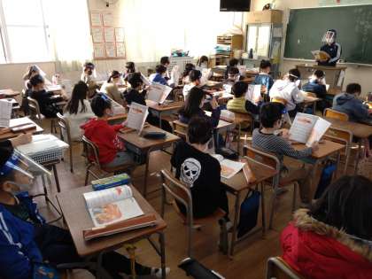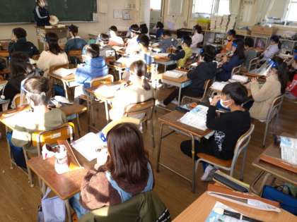 3年生では音楽科で「帰り道」「あの雲のように」を学習しています。前半は「帰り道」を歌います。曲名の通り、家に帰る気持ちを連想させる歌です。穏やかな曲の中、1日を振り返り、一緒に過ごした仲間とともに変える様子が表れています。歌いながら子どもたちの気持ちも落ち着いてきたようです。