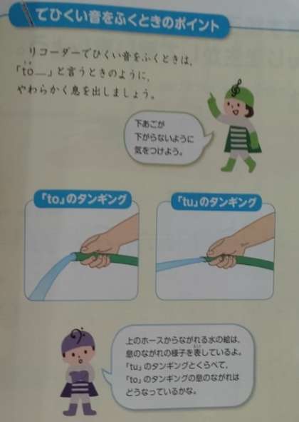 次は、「あの雲のように」をリコーダーで演奏します。その前に、低い音を拭くときの練習です。コツは、柔らかい息の出し方のようです。何度も練習していました。