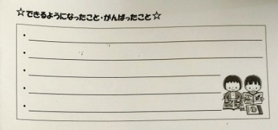 「できるようになったこと」「がんばったこと」も振り返ります。「給食で〜を食べられるようになった」「なわとび(けん盤ハーモニカ)ができるようになった」など、がんばったことをいっぱい思い出していました。