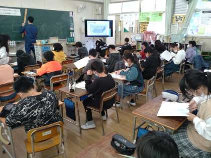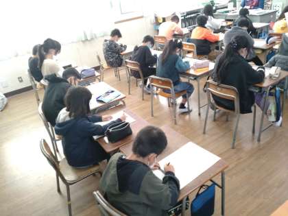 4年生では算数科で「長区訪台と立方体」の学習をしています。2組では、方眼厚紙が配られ、たて2cm横3cm高さ1cmの直方体の展開図をかくチャレンジ問題に取り組んでいました。「面が1つおきに同じ形をしている。」「重なる辺はすべて等しい。」前時に学んだ展開図の性質について忘れないようにしてかけるでしょうか。