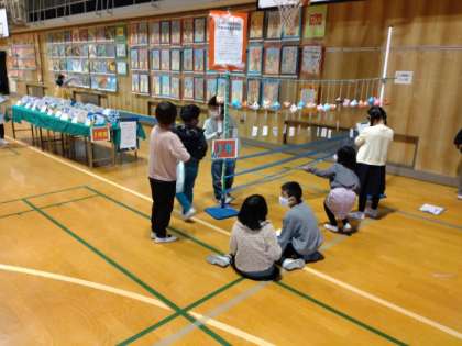 個人懇談会の期間に作品展も実施しています。保護者の皆様には、個人懇談会の前後に体育館へお立ちよりいただきご見学ください。