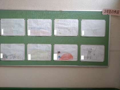 ぼくが ここに 公開日 2021/12/17 更新日 2021/12/17 お知らせ 3年生の掲示板に、国語科で学んだ「ぼくが ここに」の詩の視写が貼られていました。ていねいに視写した後、思い浮かぶ情景を挿絵にしていました。「ぼく」「ぞう」「広く遠くへつながる大地と空」子どもによって詩の捉え方は多様でした。 いいね(0)