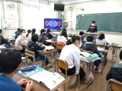 5年生は社会科で「情報社会に生きるわたしたち」を学習しています。本時では、ニュース番組がどのようにして作られているのかを調べていました。教科書には、ニュース番組が作られる過程を5枚の写真にまとめられています。その写真を手掛かりに話し合いを進めています。1000件以上の情報を収集して、いろいろな役割の人で取材、大人数での編集会議、原稿を作ったら映像の編集、そしてやっと放送、1つのニュースができるまでに多くの人と手間がかかっていることに気づいたでしょうか。