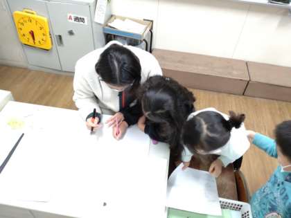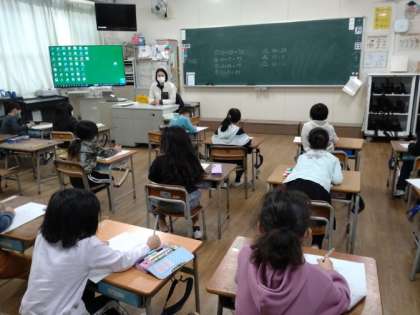 計算練習 公開日 2021/12/22 更新日 2021/12/22 お知らせ 1年生は算数科で、これまで習ったことを復習しています。2組では、先生が黒板に式をかいていました。児童はプリントに解いていました。プリントにはノートのような枠がないので、筆算をいい加減に書くと位がずれて正しく計算できません。子どもたちは、プリントにまるで枠があるかのように、筆算を書き計算をしていました。 できたい児童は前にいる先生の所へもって行き、採点してもらいます。並んでいる間、ドキドキして待っていたでしょうか。 いいね(0)