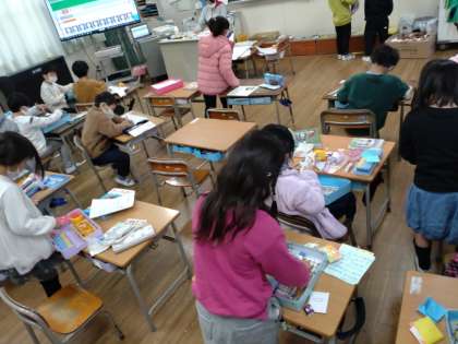 2学期末になり、教室内の掃除や身の回りの整理整頓をする時期になりました。1年1組では、机の中の大掃除をしていました。お道具箱を出して、中の品物を丁寧に並べ替えます。今までお道具箱の中身がいっぱいで机に入りにくかった児童も、きれいに並べてみると箱にきちんと収まります。机の奥から、古いプリントや無くしたと思っていた物が見つかった児童はいなかったでしょうか。