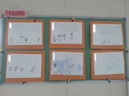 1年生の掲示板に国語科で学習した詩「みみずの たいそう」の視写が掲示されていました。「みみずの たいそう ぴん ぴん ぴん」自分の体を「みみず』に例えること、そして動きを「ぴん ぴん ぴん」と音に表現することで、体をより真っ直ぐに伸ばすことができます。丁寧な字で書かれていました。