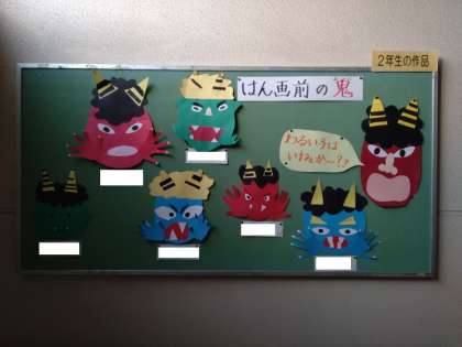 はん画前の「鬼」 公開日 2022/02/04 更新日 2022/02/04 お知らせ 2年生の掲示板に「はん画前の『鬼』」が掲示されていました。とがった角、鋭い牙、にらみつける目、どの鬼も迫力のある表情になっています。 この後、紙版画をするようです。インクの加減や擦り具合によって、より味わいがある個性的な鬼の顔ができあがることでしょう。楽しみです。 いいね(0)