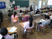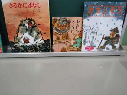 教室の後ろにも、子どもたちが選んだ、よい本がたくさん並べられていました。